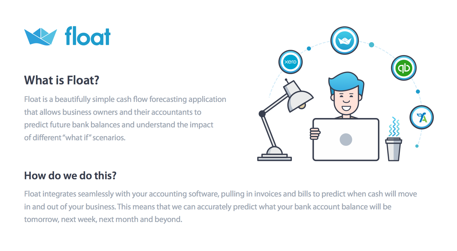 We can provide FloatApp cash flow forecasting software as an add-on to our FreeAgent software inclusive packages.